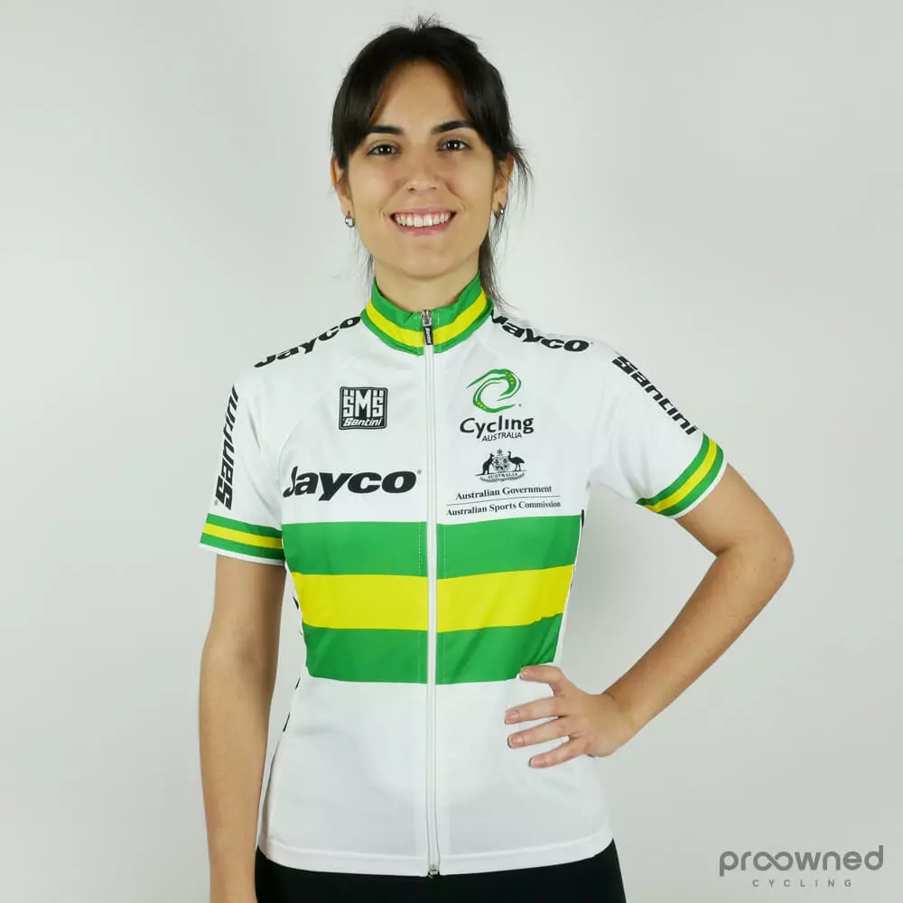 Brand new training jersey from Santini. The training jersey comes from the Australian National Team and is made for the 2013 season. Even though it is a training Jersey, the quality is still good. The jersey is made by the Italian brand Santini, which is known to provide top quality clothing for all seasons. The jersey is specially tailored for women.